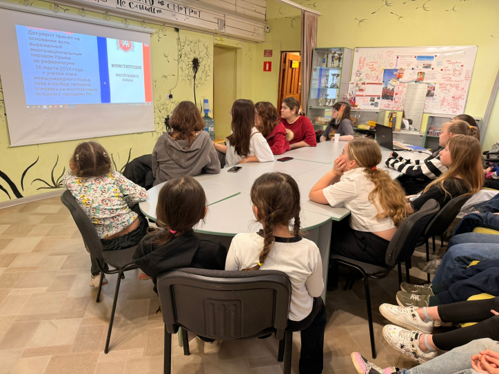 Педагог волонтёрского центра «Добровольцы Алушты» провела для ребят важную и душевную встречу. Главной темой разговора стали ценности, закрепленные в Основном законе нашей республики, и любовь к малой родине, которая начинается с каждого из нас.