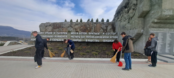 23 марта объектом заботы обучающихся стал мемориальный комплекс, расположенный на 5-м километре трассы Алушта — Ялта. Волонтёры провели работы по благоустройству Памятника крымским партизанам — место, которое является символом немеркнущей славы и хранит в камне историю мужества, стойкости и отваги героев, самоотверженно сражавшихся за освобождение Крыма в 1941–1944 годах