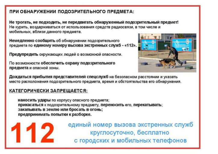 » памятки по действиям обучающихся при обнаружении бесхозных предметов
